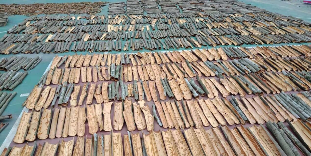 重人才,打品牌,讓桂業(yè)更強。肉桂種植有產(chǎn)業(yè)、有品牌、有規(guī)模,才能進一步打開商業(yè)渠道,帶動村民致富增收。通門鎮(zhèn)黨委、政府積極發(fā)展肉桂精深加工,通過引入云浮市建钘科技發(fā)展有限公司與鎮(zhèn)人才驛站邀請仲愷農(nóng)業(yè)工程學院形成“政校企”三方合力,共同研發(fā)肉桂清洗烘干裝置、肉桂切割裝置,以提升肉桂生產(chǎn)效率。2021年,通門鎮(zhèn)優(yōu)秀的種植環(huán)境和優(yōu)質(zhì)的肉桂產(chǎn)品吸引以華通香料廠為主等一批肉桂精深加工企業(yè)投資建廠,研究開發(fā)新產(chǎn)品,促進肉桂產(chǎn)業(yè)逐步從傳統(tǒng)農(nóng)業(yè)向現(xiàn)代農(nóng)業(yè)轉(zhuǎn)變,實現(xiàn)數(shù)量、規(guī)模、質(zhì)量“三提升”。