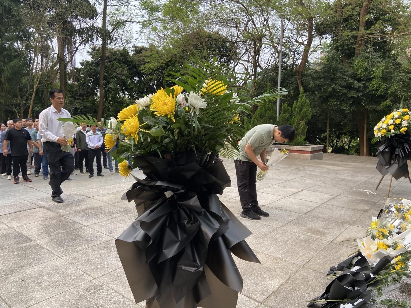上午9時,全體人員衣著莊重,佩戴黨員徽章,來到革命烈士紀念碑前整齊排列,向烈士默哀致敬,敬獻鮮花,深切緬懷英烈不朽功勛,寄托對烈士無盡哀思之情。隨后,全體人員來到烈士墓區(qū)對落葉和枯枝進行清掃,為英烈墓擦拭墓碑,告慰先烈英靈。