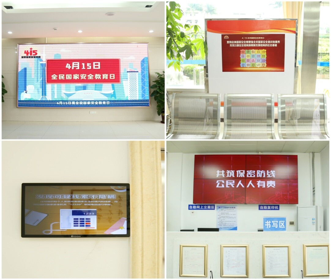 廣泛宣傳營造濃厚氛圍。充分發(fā)揮媒體和宣傳平臺(tái)作用,如通過顯示屏滾動(dòng)播放國家安全宣傳標(biāo)語及公益宣傳片、在宣傳欄粘貼國家安全宣傳海報(bào)等,廣泛宣傳國家安全知識(shí)和維護(hù)國家安全的重要意義,多途徑營造“國家安全,人人有責(zé)”的濃厚氛圍,進(jìn)一步增強(qiáng)法院干警、人民群眾維護(hù)國家安全的責(zé)任感和使命感。