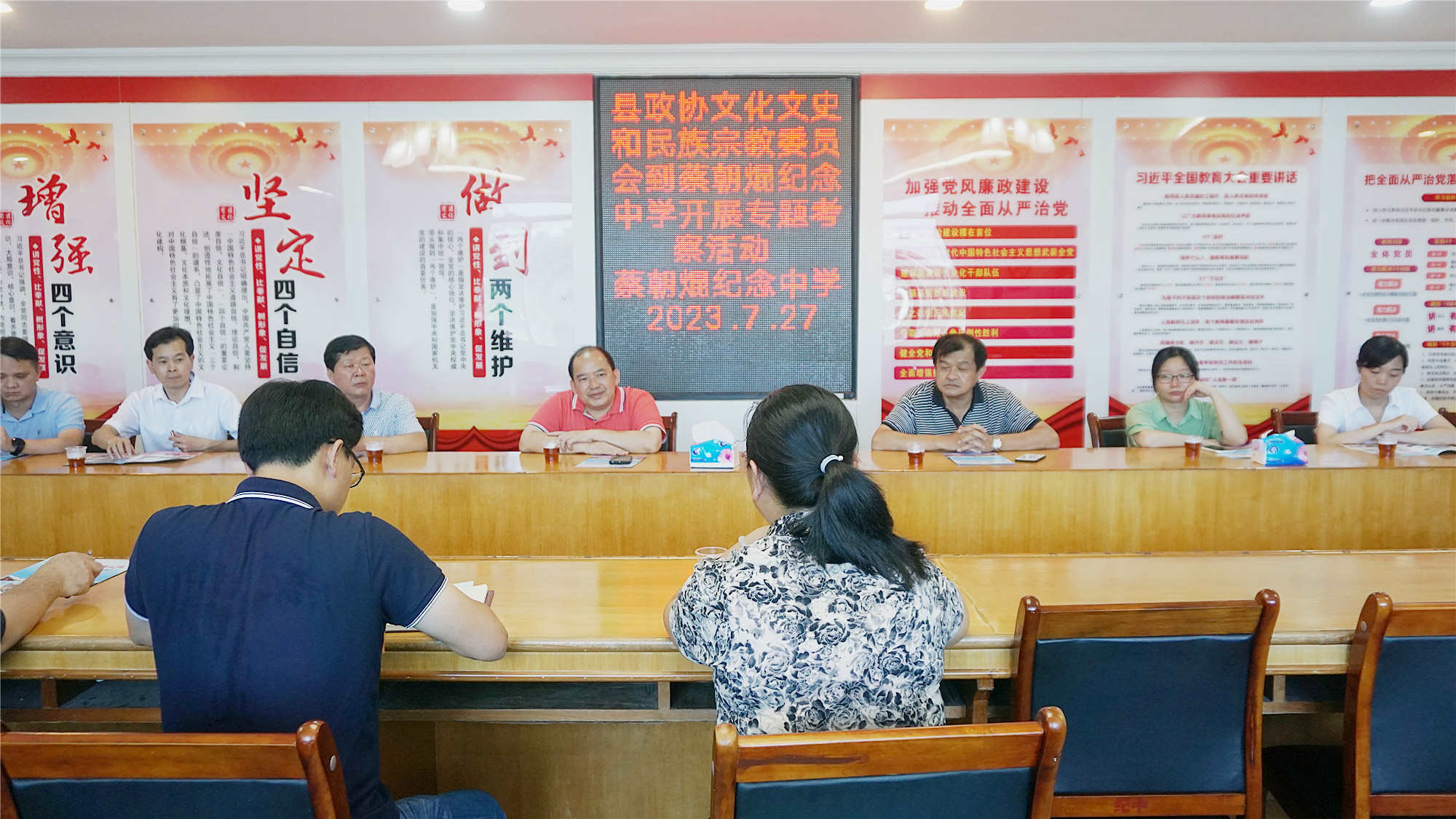 7月27日下午,縣政協(xié)黨組副書記、副主席朱永通帶領(lǐng)縣政協(xié)文化文史和民族宗教委員會(huì)考察組到蔡朝焜紀(jì)念中學(xué)開(kāi)展“充分利用我縣特色文化,加強(qiáng)我縣校園文化建設(shè)”專題考察活動(dòng)??疾旎顒?dòng)中,考察組一行了解了蔡朝焜紀(jì)念中學(xué)校園文化及書香校園建設(shè)情況,實(shí)地考察學(xué)?;墼撮L(zhǎng)廊、匯知長(zhǎng)廊、英烈文化宣傳長(zhǎng)廊、校園文化石等校園文化設(shè)施??疾旖M對(duì)蔡朝焜紀(jì)念中學(xué)“愛(ài)國(guó)、愛(ài)校、求真、求知”的校訓(xùn)文化內(nèi)涵及濃厚的“立德樹(shù)人”的校園文化氛圍給予了高度肯定,同時(shí)也提出了指導(dǎo)性意見(jiàn)建議,并寄予了殷切期望。