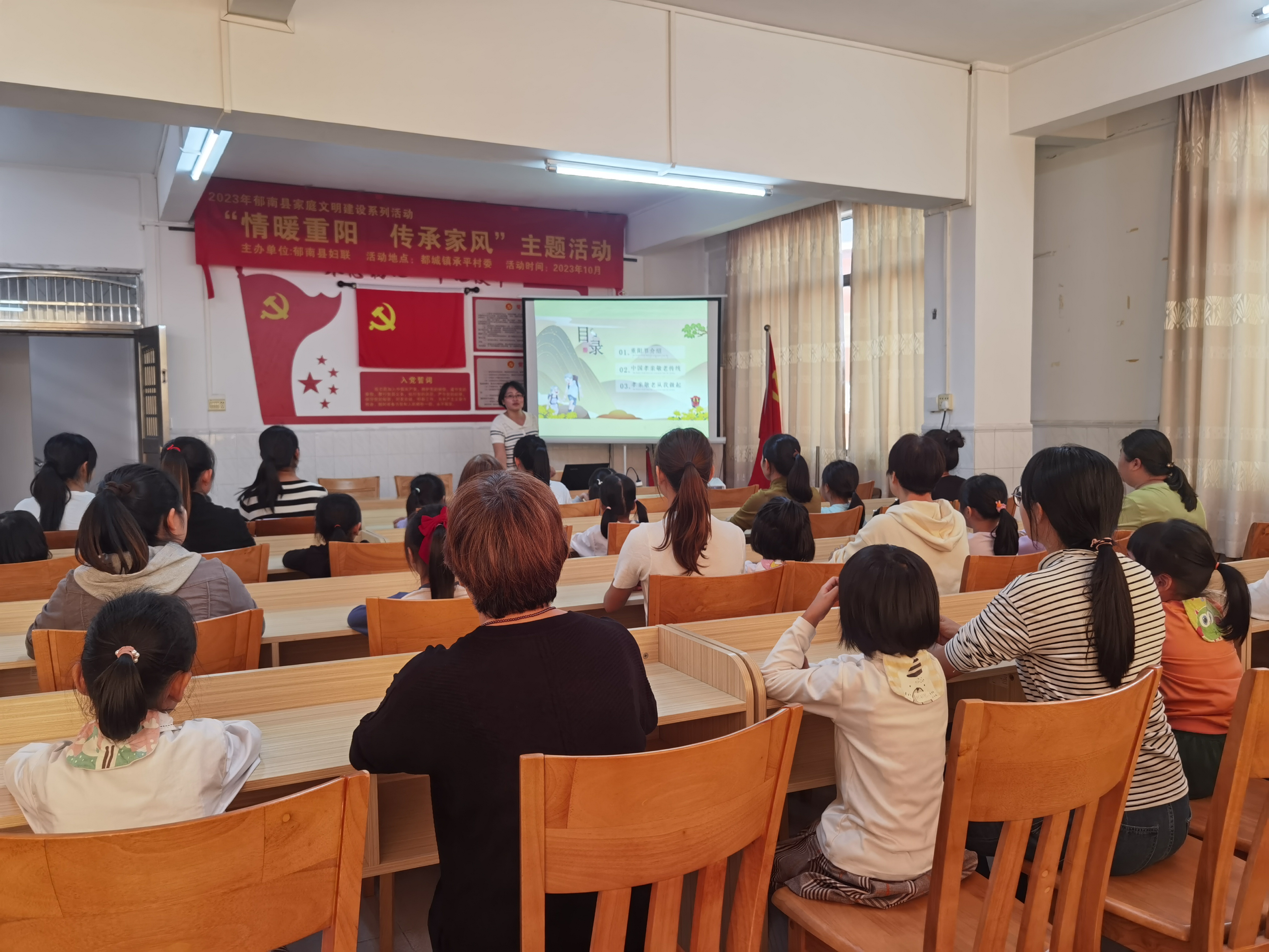 為弘揚(yáng)中華民族尊老、敬老、助老的傳統(tǒng)美德,加強(qiáng)家庭文明建設(shè),培育優(yōu)良家風(fēng),10月23日,郁南縣婦聯(lián)到都城鎮(zhèn)承平村開展“情暖重陽 傳承家風(fēng)”主題活動,此次活動吸引了40多人參加。