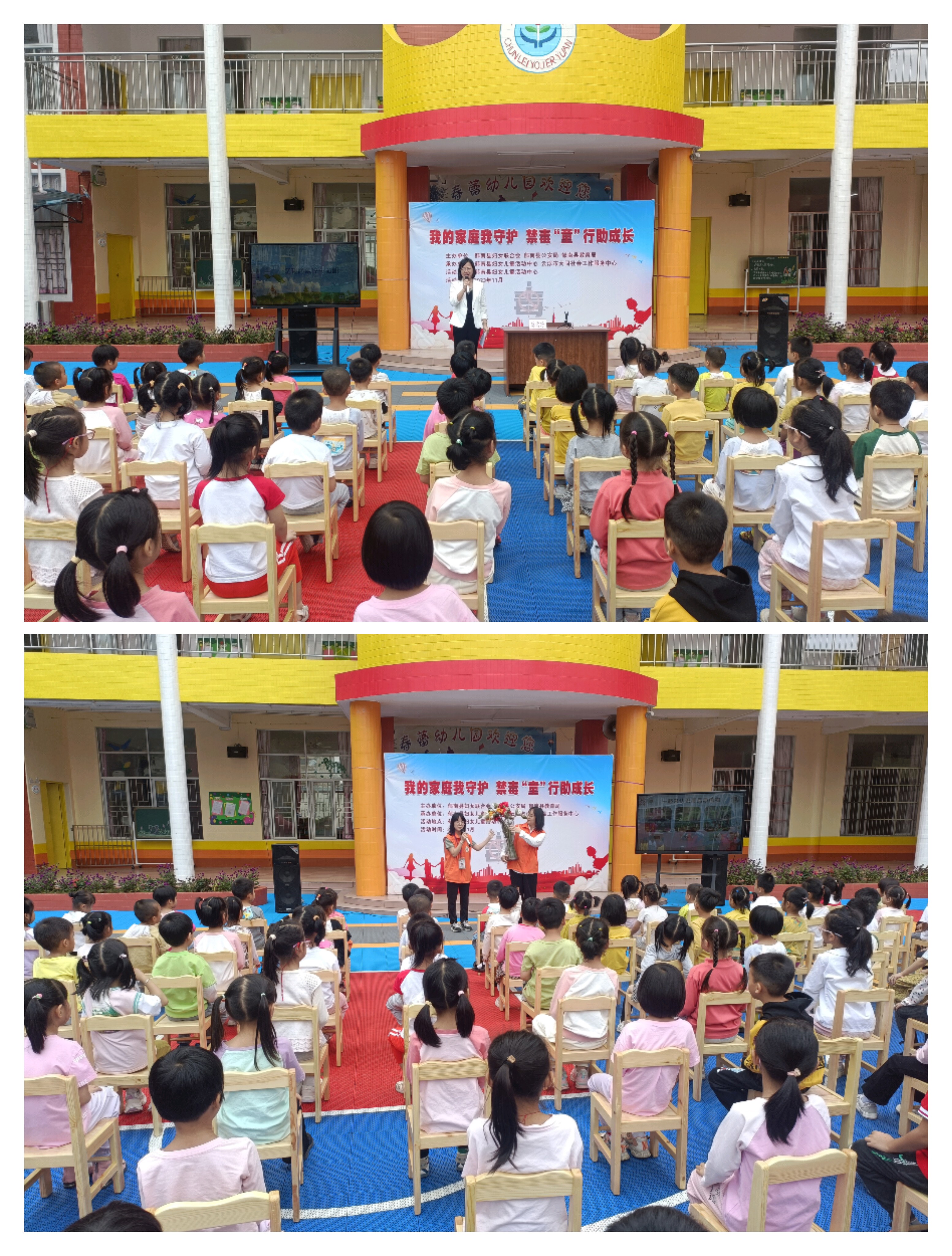 針對幼兒園兒童年紀(jì)小、理解能力有限的特點(diǎn),巾幗禁毒志愿者采用簡潔明了的PPT形式,通過生動有趣的圖片、故事,講解了毒品的形狀特點(diǎn)、吸毒的危害以及怎樣拒絕毒品,教育小朋友們要珍愛生命,遠(yuǎn)離毒品,不要隨意接受陌生人的飲料和食品。禁毒小課堂結(jié)束后巾幗志愿者組織小朋友們參觀了禁毒宣傳海報和仿真毒品模型,參與“禁毒套圈圈”和“甩毒蛋”等互動游戲。通過宣傳教育和游戲互動,讓參與的孩子們以寓教于樂、寓學(xué)于趣的形式認(rèn)識到毒品的危害,增強(qiáng)對毒品的防范意識和自我保護(hù)能力。