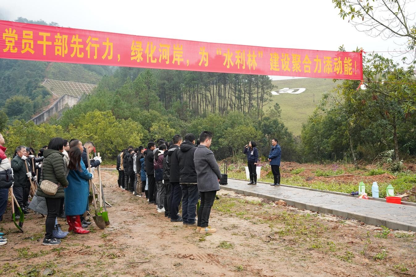 貫徹習近平生態(tài)文明思想,落實省、市、縣實施“百千萬工程”和綠美廣東生態(tài)建設的部署要求,牢固樹立和踐行“綠水青山就是金山銀山”理念。128日,郁南縣水務局直屬機關黨委組織“黨建引領凝心聚力?植水利林建綠美郁南”主題黨日活動,植樹活動在向陽水庫開展,共有100多名黨員干部職工參與、種植紫花風鈴藍花楹600棵,市水務局黃海燕局長蒞臨現(xiàn)場進行動員講話,水利角度助推“百千萬工程”及綠美廣東生態(tài)建設提出寶貴的指導意見。