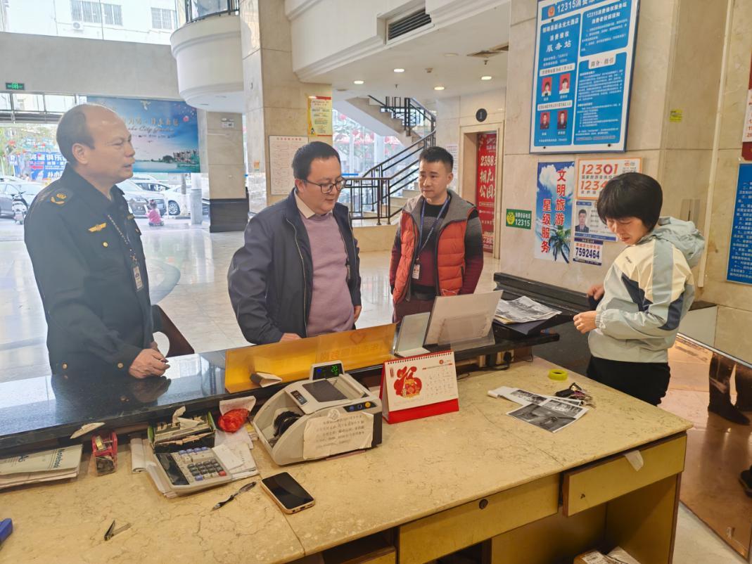 為維護(hù)良好的假日市場(chǎng)環(huán)境,促進(jìn)文旅體市場(chǎng)消費(fèi),保障人民群眾度過(guò)歡樂(lè)祥和、平穩(wěn)有序的春節(jié)假期,1月21日,云浮市文廣旅體局辦公室主任郭家樂(lè)同志帶領(lǐng)市文物保護(hù)科、執(zhí)法科等相關(guān)科室負(fù)責(zé)同志,聯(lián)合郁南縣文廣旅體局開展2025年春節(jié)前文化廣電旅游體育行業(yè)市場(chǎng)綜合檢查。