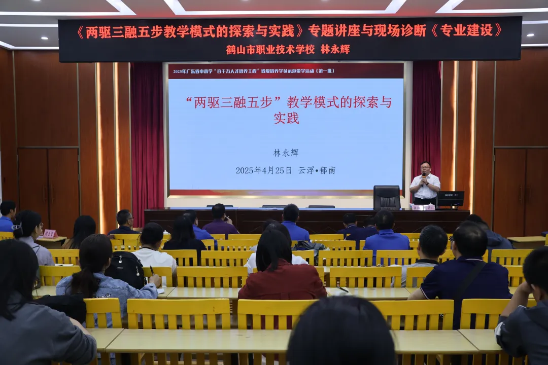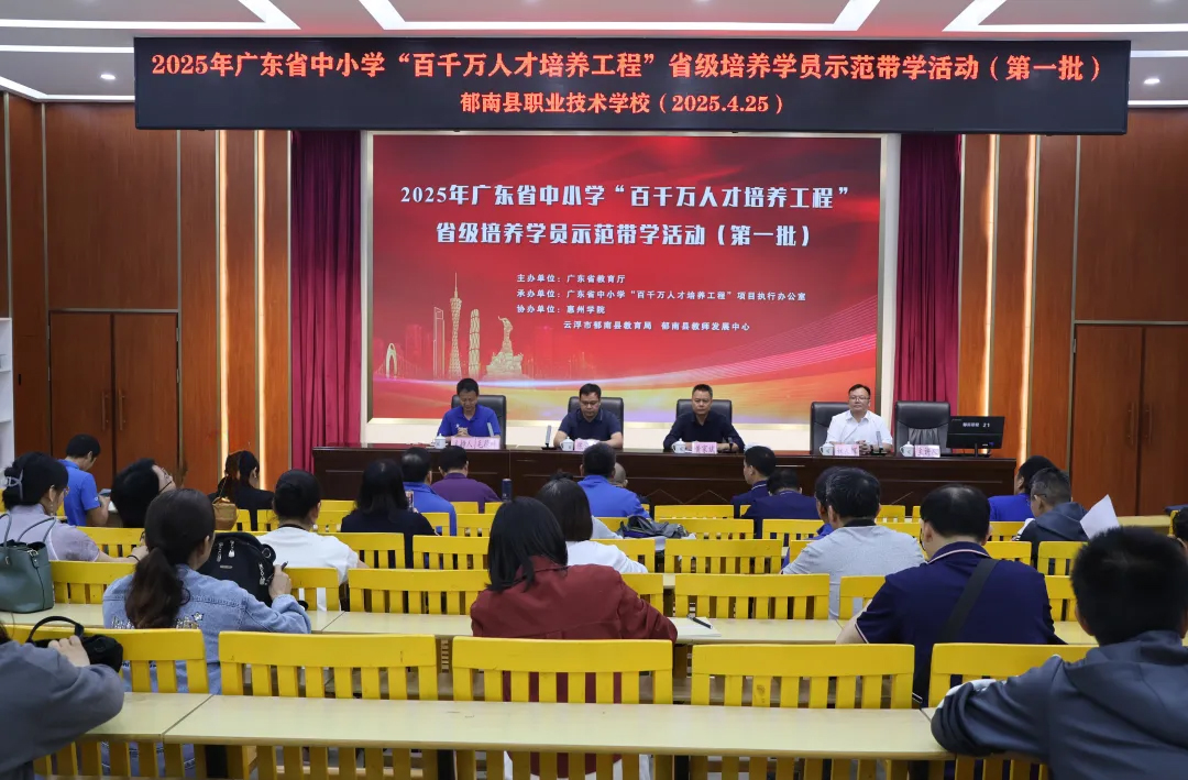 2025 年 4 月 25 日上午,郁南縣職業(yè)技術(shù)學(xué)校內(nèi)學(xué)術(shù)氛圍熱烈,2025 年廣東省中小學(xué) “百千萬(wàn)人才培養(yǎng)工程” 省級(jí)培養(yǎng)學(xué)員示范帶學(xué)活動(dòng)(第一批)在此順利舉行。此次活動(dòng)由郁南縣職業(yè)技術(shù)學(xué)校黨委委員、副校長(zhǎng)毛德葉主持,郁南縣教師發(fā)展中心主任黃家斌、郁南縣職業(yè)技術(shù)學(xué)校黨委書(shū)記陳永明及全體教師共同參與,為提升學(xué)校教育教學(xué)水平注入新動(dòng)力。