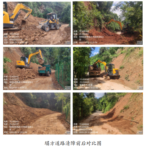 本次塌方共三處,總體積約250立方米。險(xiǎn)情發(fā)生后,郁南縣水務(wù)局迅速響應(yīng),立即啟動應(yīng)急預(yù)案,組織搶險(xiǎn)力量趕赴現(xiàn)場,全面開展應(yīng)急清障與道路搶通工作,面對緊急情況,聯(lián)合制定清障方案,緊急調(diào)集挖掘機(jī)、推土機(jī)、農(nóng)用運(yùn)輸車及手扶拖拉機(jī)等設(shè)備4臺,連續(xù)晝夜施工,全力以赴推進(jìn)搶通任務(wù)。