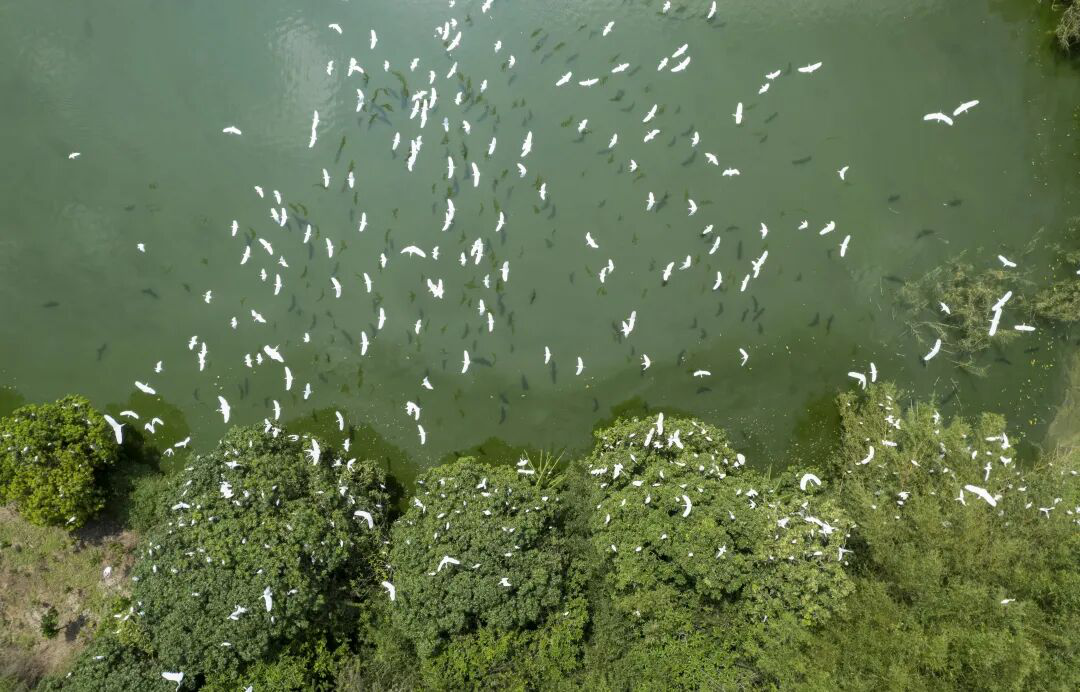 日前,近千只國家二級保護動物白鷺翩然造訪郁南縣建城鎮(zhèn)濕地。它們在稻田與河岸間輕盈起舞、低空盤旋覓食,潔白的羽翼與碧水青山交相輝映,勾勒出一幅靈動和諧的生態(tài)畫卷,成為當?shù)厣鷳B(tài)文明建設的生動寫照。