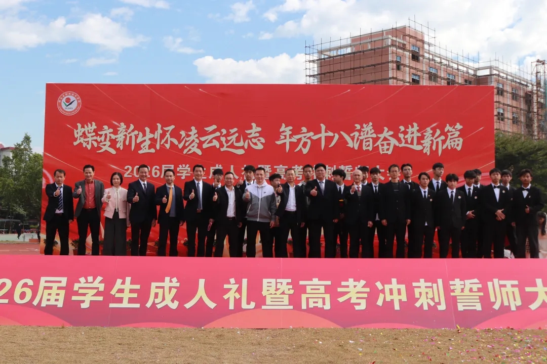 2025年11月22日上午,郁南縣職業(yè)技術(shù)學(xué)校足球場彩旗飄揚(yáng)、禮炮齊鳴,2026屆成人禮暨高考沖刺誓師大會隆重舉行。大會以“蝶變新生懷凌云遠(yuǎn)志,年方十八譜奮進(jìn)新篇”為主題,縣政府副縣長溫伯榮、縣教育局副局長吳卓堯等縣領(lǐng)導(dǎo)和局領(lǐng)導(dǎo),學(xué)校班子與中層行政,23級高考部全體師生及家長代表共千余人齊聚現(xiàn)場,共同見證這一莊重時刻。