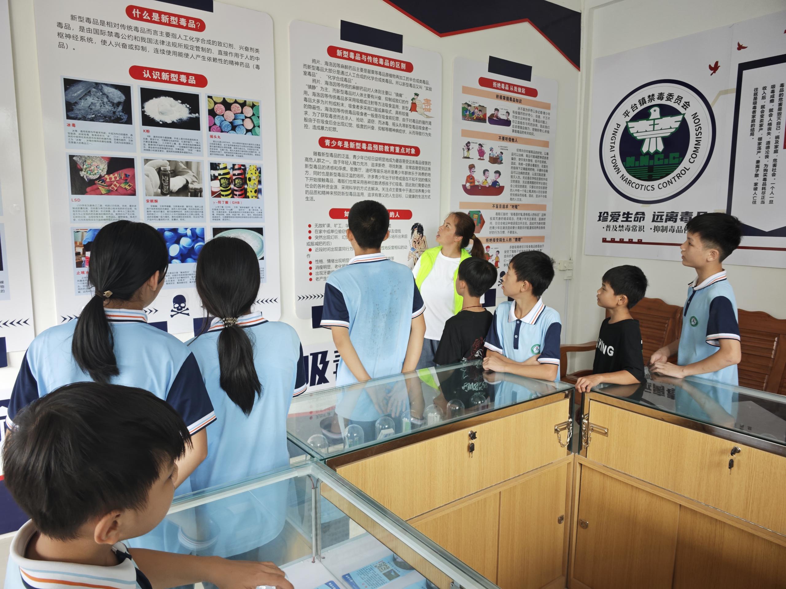 在鎮(zhèn)禁毒宣傳教育基地,駐平臺(tái)鎮(zhèn)幫扶工作隊(duì)員化身“禁毒宣傳大使”,向師生們宣講了毒品的種類、毒品的危害及如何防范毒品等知識(shí)。并通過(guò)趣味問(wèn)答的形式,讓同學(xué)們?cè)谳p松愉快的氛圍中學(xué)習(xí)禁毒知識(shí),引導(dǎo)他們深刻認(rèn)識(shí)到毒品對(duì)個(gè)人、家庭及社會(huì)的嚴(yán)重危害。在場(chǎng)學(xué)生們認(rèn)真閱讀,不時(shí)與身邊的同學(xué)交流討論,毒品仿真模型的展示更是讓學(xué)生們直觀地認(rèn)識(shí)到毒品的形態(tài),增強(qiáng)了他們對(duì)毒品的辨別能力。