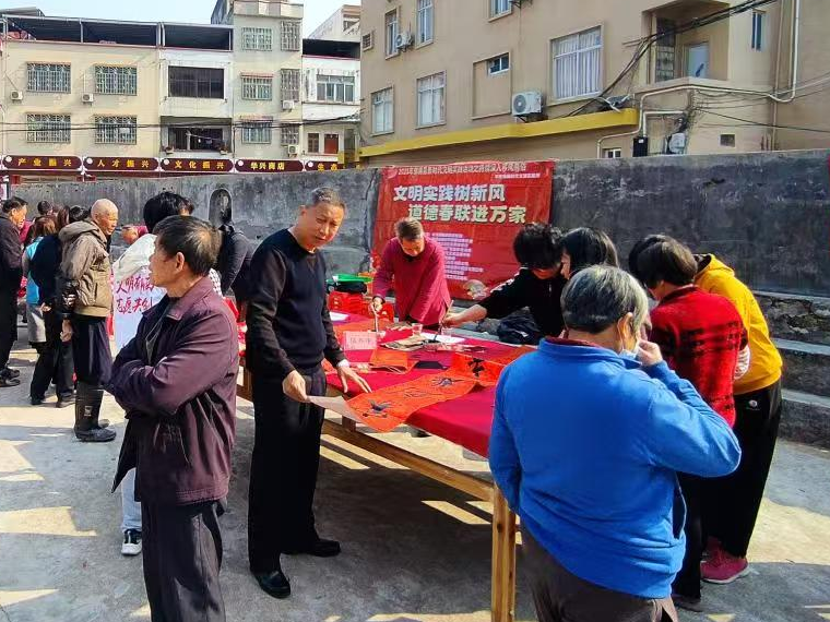 日前,郁南縣宋桂鎮(zhèn)舉辦“文明實(shí)踐樹新風(fēng),道德春聯(lián)進(jìn)萬家”活動(dòng),郁南縣書畫家協(xié)會(huì)的書法家們受邀免費(fèi)為群眾揮春。