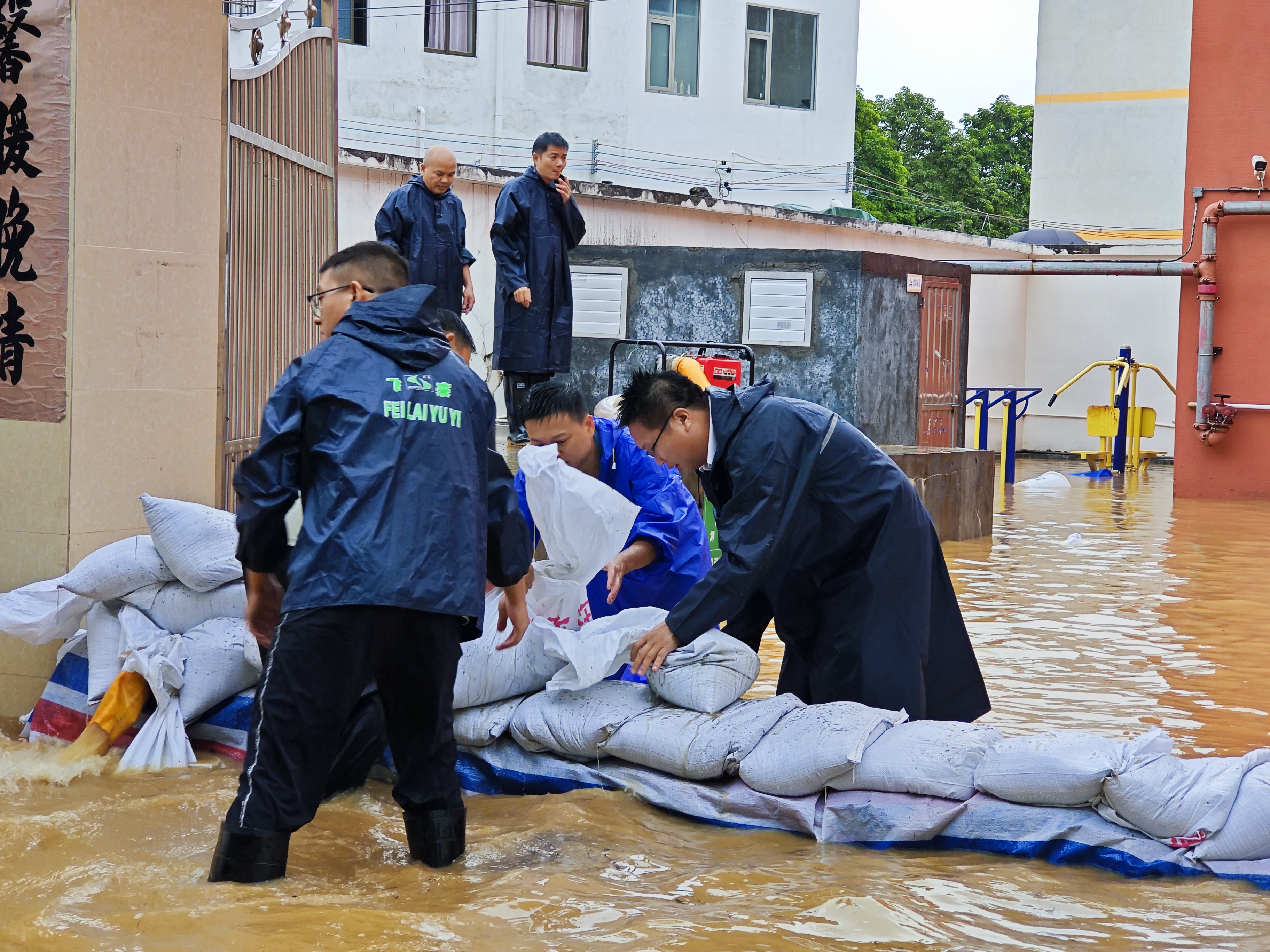 鎮(zhèn)敬老院因地勢較低出現(xiàn)積水跡象,鎮(zhèn)黨委、鎮(zhèn)政府迅速轉(zhuǎn)移并安置院內(nèi)老人,組織工作人員緊急開展沙包堆放作業(yè),并啟用抽水泵對已積水區(qū)域進行抽排,用責任與行動筑起一道堅實的“防洪墻”,最大限度降低積水影響。
