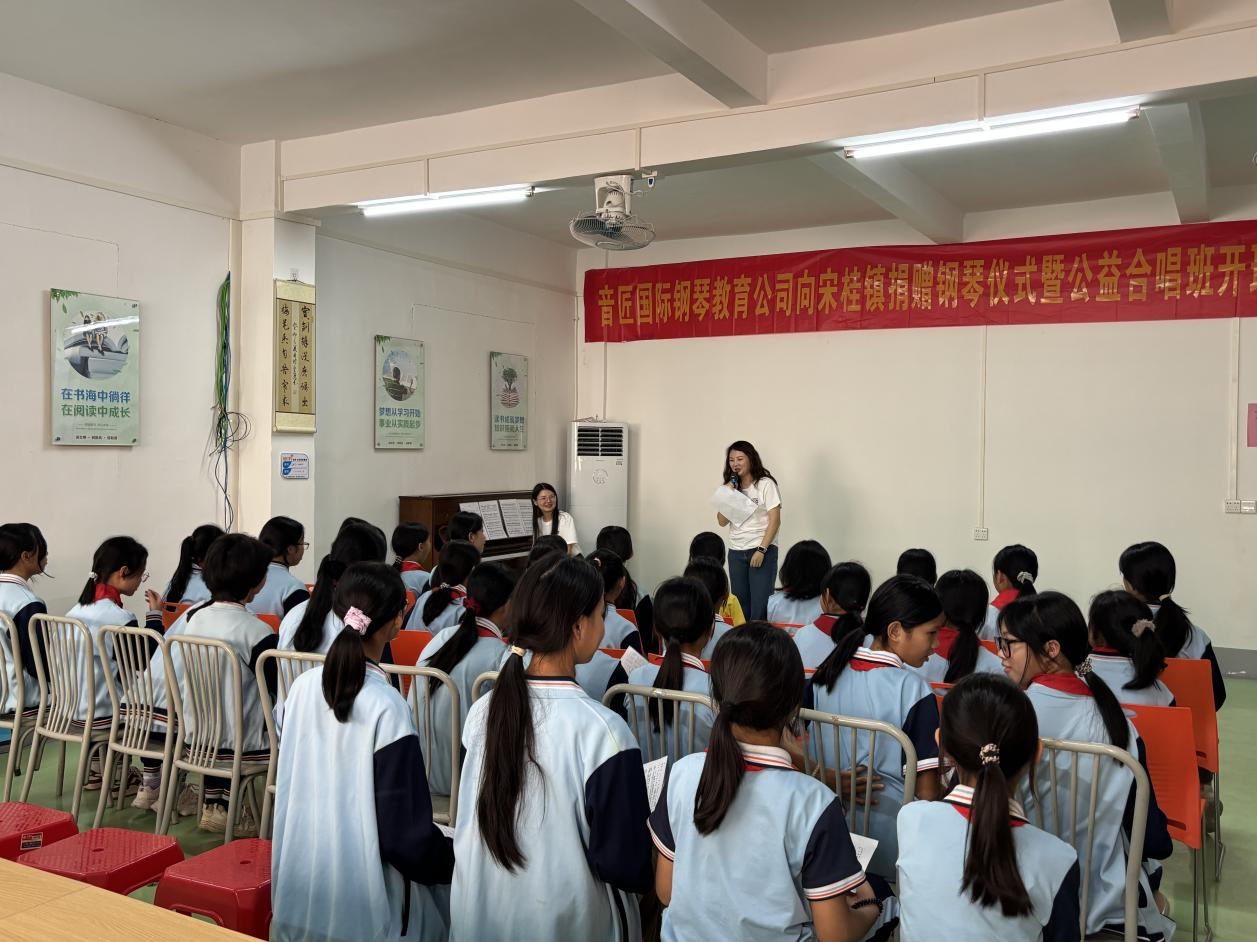 為破解這一難題,佛山市駐宋桂鎮(zhèn)幫扶工作隊(duì)組團(tuán)單位佛山市商務(wù)局主動(dòng)對(duì)接佛山優(yōu)質(zhì)教育資源,經(jīng)多輪溝通協(xié)調(diào),最終與音匠教育達(dá)成合作。音匠教育不僅捐贈(zèng)1臺(tái)價(jià)值2萬元的鋼琴,還同步開展公益合唱教學(xué)和持續(xù)開展音樂支教活動(dòng),讓優(yōu)質(zhì)藝術(shù)教育資源下沉鄉(xiāng)村。