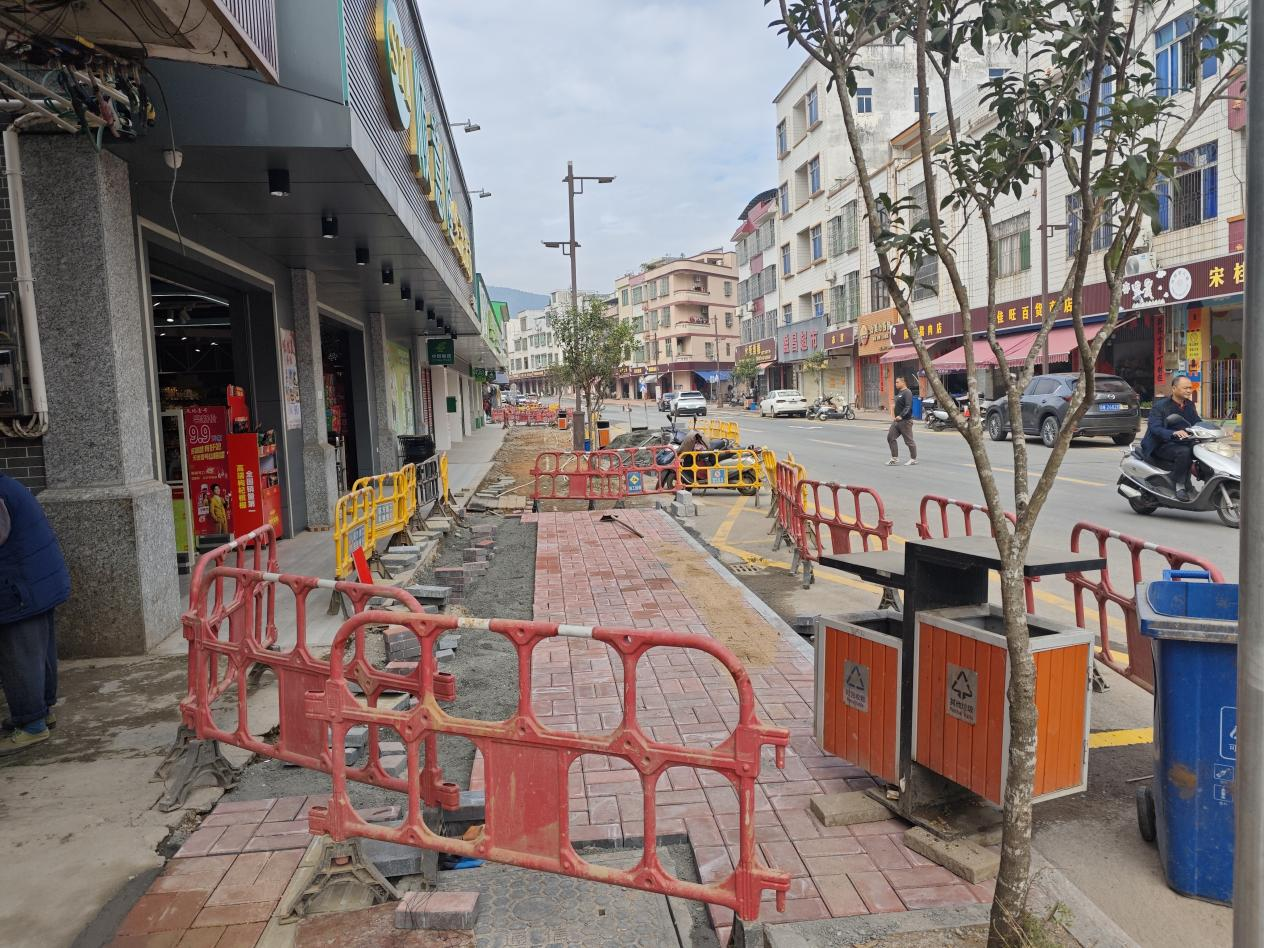 修復(fù)基礎(chǔ)設(shè)施,出行安全“齊守護(hù)”。針對圩鎮(zhèn)部分路段人行道地磚破損、松動、缺失等問題,宋桂鎮(zhèn)將人行道修復(fù)提升作為重要的民生工程來抓,通過協(xié)調(diào)中鐵二十二局派出施工隊伍對主干道兩側(cè)人行道進(jìn)行系統(tǒng)排查與重新鋪設(shè)地磚,累計修整破損人行道400余米。同時,對模糊不清的盲道進(jìn)行補設(shè)與更新,保障特殊人群安全通行。通過精細(xì)化施工,不僅消除了行人出行隱患,也進(jìn)一步美化了街道界面,提升了圩鎮(zhèn)的宜居品質(zhì)和整體形象。