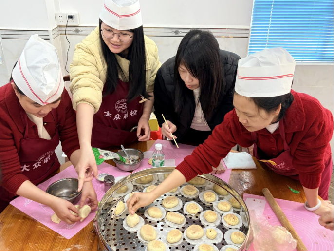 學員們熱情高漲、認真投入,緊跟講師步驟動手實操。揉面、包餡、塑形、蒸制,大家互幫互助、相互交流,在一次次嘗試中摸索技巧,在反復練習中提升技藝?,F(xiàn)場不時傳來歡聲笑語,大家在動手實踐中感受中式面點的獨特魅力,在相互切磋中增進情誼、共同進步。