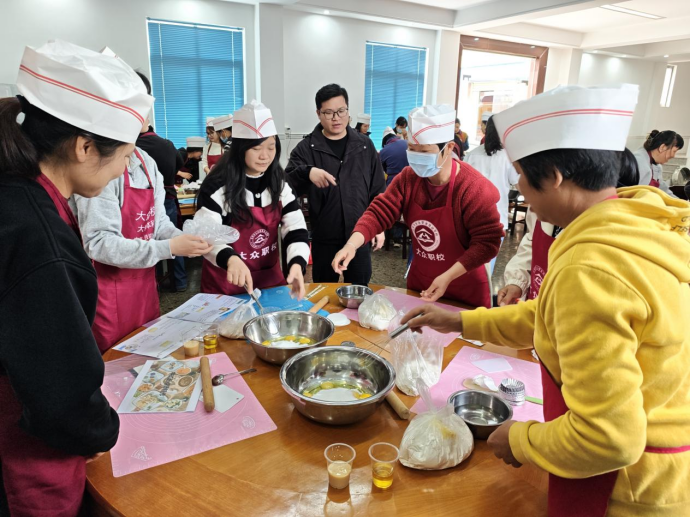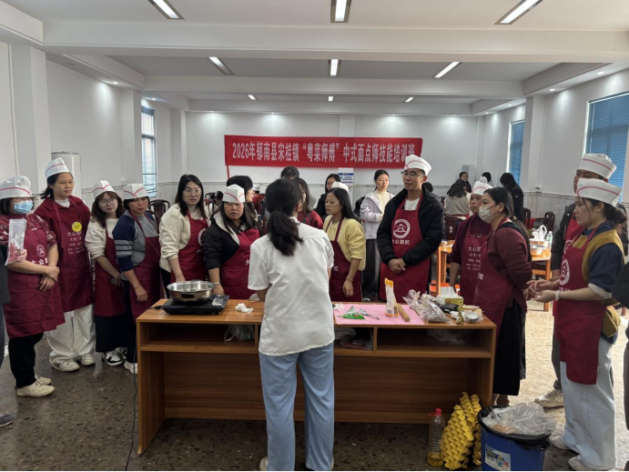 深入實施“粵菜師傅”工程,傳承粵式面點匠心技藝,拓寬群眾就業(yè)創(chuàng)業(yè)渠道,近日,郁南縣宋桂鎮(zhèn)聯(lián)合云浮市大眾職業(yè)培訓學校精心舉辦“粵菜師傅”中式面點技能培訓班,吸引了轄區(qū)內(nèi)餐飲從業(yè)者、烹飪愛好者等50名群眾踴躍參與,以技能賦能民生,以匠心守護粵味,以驛站凝聚人才,切實打通技能培訓、人才培育、就業(yè)增收的“最后一公里”。