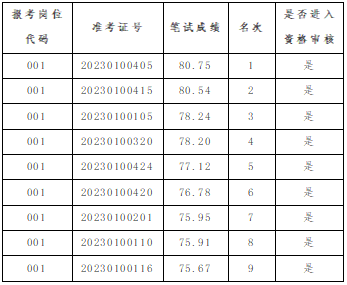 按照《郁南縣人民檢察院2023年公開招聘勞動(dòng)合同制司法輔助人員公告》,根據(jù)本次考生筆試成績整體情況,確定筆試合格分?jǐn)?shù)線為60分,按招聘崗位人數(shù)1:3的比例,按筆試成績由高到低順序確定資格審核對(duì)象。