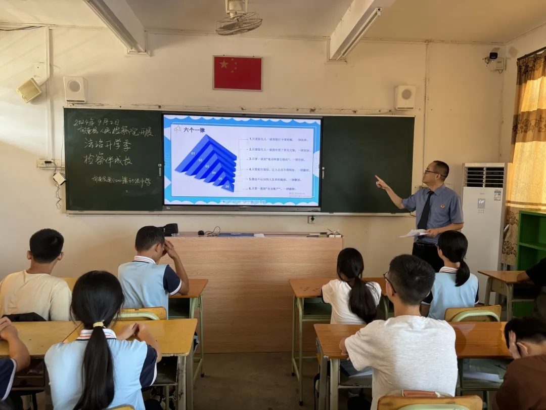 新學(xué)期的鐘聲已悠揚響起,郁南縣人民檢察院持續(xù)以“線上普法+現(xiàn)場授課”的模式為新學(xué)期扎實推進法治校園建設(shè)拉開帷幕。9月2日上午,我院14名法治副校長攜手3名“小小講解員”,以“線上+線下”的形式連接全縣175間中小學(xué)校,共同開展“法治開學(xué)季,檢察伴成長”主題法治宣傳進校園活動。