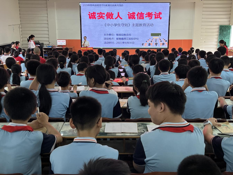 為進(jìn)一步培育和踐行社會主義核心價值觀,引導(dǎo)學(xué)生樹立規(guī)則意識和責(zé)任意識,大力弘揚(yáng)誠實(shí)守信的中華傳統(tǒng)美德,養(yǎng)成良好的行為習(xí)慣,6月30日,郁南縣教育局在西江實(shí)驗(yàn)學(xué)校開展主題為“誠實(shí)做人 誠信考試”的規(guī)范守則教育實(shí)踐活動。