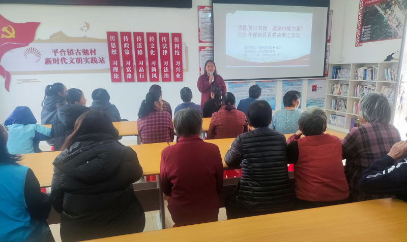 為進(jìn)一步培育和踐行社會(huì)主義核心價(jià)值觀,弘揚(yáng)主旋律,傳遞正能量,引領(lǐng)廣大婦女為開(kāi)創(chuàng)事業(yè)發(fā)展新局面貢獻(xiàn)巾幗力量,12月6日,郁南縣婦女聯(lián)合會(huì)舉辦“強(qiáng)國(guó)復(fù)興有我  凝聚巾幗力量”百姓故事匯活動(dòng),活動(dòng)邀請(qǐng)了云浮市婦聯(lián)“最美執(zhí)委”、平臺(tái)鎮(zhèn)古勉村婦聯(lián)主席李佩諫講述身邊典型故事,凝聚奮進(jìn)情。