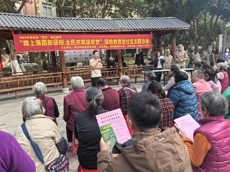 以史鑒今,資政育人,學(xué)好“四史”是全民國防教育的重要內(nèi)容。為增強(qiáng)全民國防觀念,凝聚廣大居民關(guān)心國防、熱愛國防、建設(shè)國防、保衛(wèi)國防的思想共識,1月8日,中共郁南縣委宣傳部聯(lián)合縣人民武裝部、都城鎮(zhèn)開展“踏上強(qiáng)國新征程 全民共筑強(qiáng)軍夢”國防教育進(jìn)社區(qū)活動。