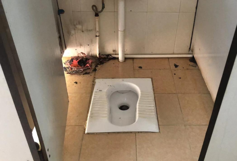 游客亂丟煙頭到旅游廁所垃圾桶引起燃燒