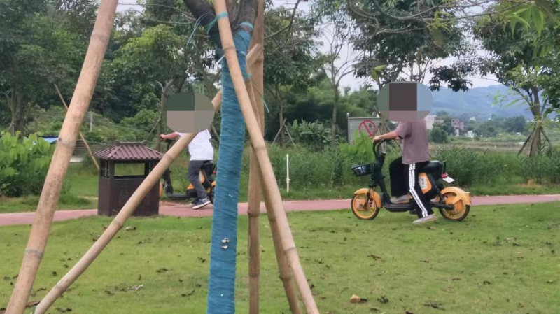 不在規(guī)定道路上騎行,破壞草坪
