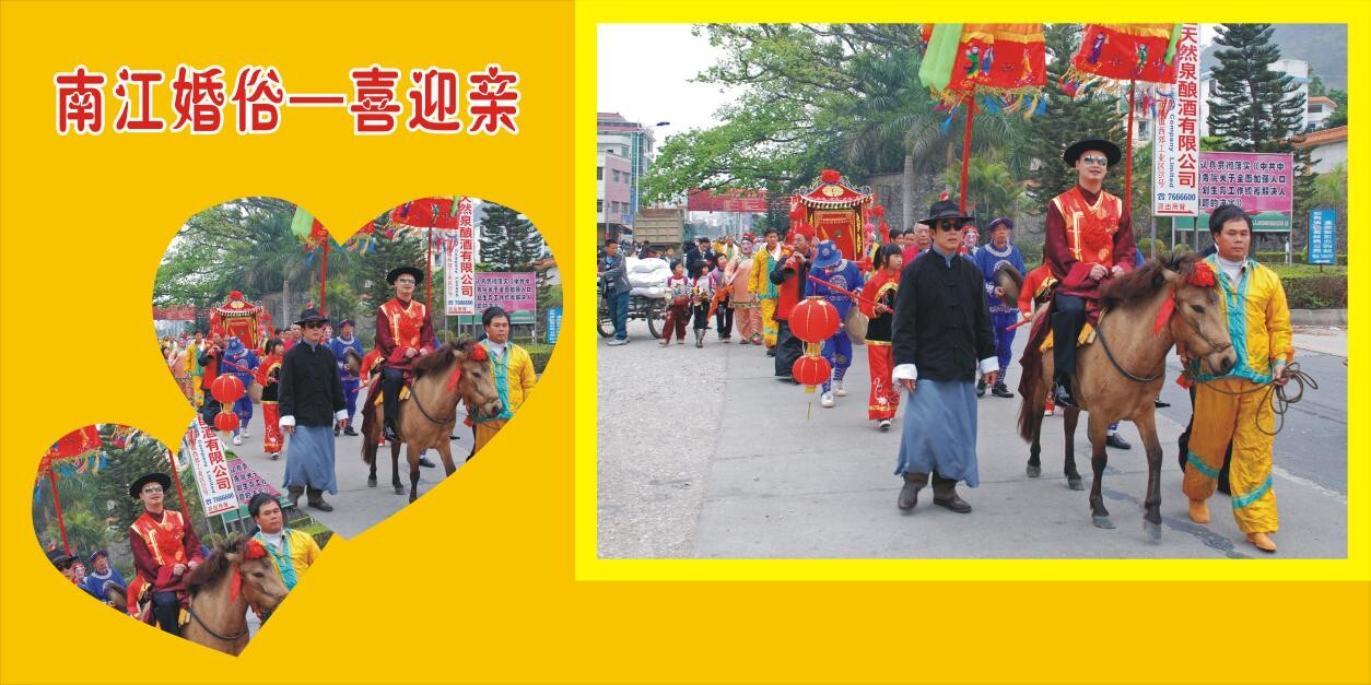 三、南江婚俗:南江婚俗,始于明末清初,這種特有的民間習(xí)俗,一直在南江流域生生不息傳承著。它以轎為交通工具,以哭嫁歌為主線,在備婚宴、接新娘、拜高堂、會歌友貫穿全婚俗的全過程,具有濃郁的南江地域特點。 南江婚俗有“六禮” 環(huán)節(jié)。“六禮”一是定婚。二是擔(dān)定,男家選定良辰吉日,備齊定金,禮品,以全柬書送之女家,決定婚事已“塵埃落定”。三是擇日,男家擇定結(jié)婚日子后,把婚期用紅柬寫好,備好禮品送女家,確定結(jié)婚日子。四是哭嫁。女方在出嫁前10天,是“三步不出閨門”,學(xué)會唱新娘歌。五是迎娶,這是婚俗中的重要禮儀。一大清早,新娘要按吉時辰梳頭,裝好面,穿好新娘服裝,等男方來迎娶。六是歸寧,又叫“三朝回門”。結(jié)婚后第三天早上,一對新人帶備禮品探訪女方娘家,至此,整個婚禮結(jié)束。