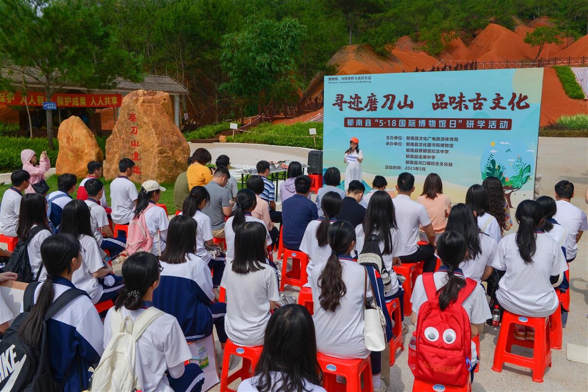 為進(jìn)一步貫徹落實(shí)黨的二十大精神和習(xí)近平總書記關(guān)于文物工作的重要論述,以及堅(jiān)持“保護(hù)第一,加強(qiáng)管理、挖掘價(jià)值、有效利用,讓文物活起來(lái)”的新時(shí)代文物工作方針,依托第47個(gè)“5·18”國(guó)際博物館日,為更好地踐行博物館日“博物館,可持續(xù)性與美好生活”的主題內(nèi)容,展現(xiàn)文化遺產(chǎn)及其相關(guān)領(lǐng)域知識(shí),提高中學(xué)生對(duì)文博知識(shí)的認(rèn)知、多了解磨刀山遺址的相關(guān)考古知識(shí),5月15日,由郁南縣文化廣電旅游體育局主辦,郁南縣文化圖書和博物館、郁南縣蔡朝焜紀(jì)念中學(xué)、郁南縣連灘中學(xué)、郁南縣河口鎮(zhèn)綜合文化站承辦的“尋跡磨刀山 品味古文化”研學(xué)活動(dòng)在河口鎮(zhèn)磨刀山遺址舉行,百多名師生參加了本次活動(dòng),發(fā)放各類宣傳小冊(cè)子200多份。
