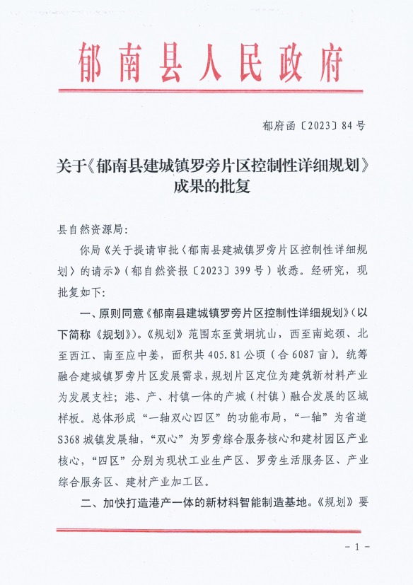 郁南縣人民政府關(guān)于《郁南縣建城鎮(zhèn)羅旁片區(qū)控制性詳細(xì)規(guī)劃》成果的批復(fù)(郁府函〔2023〕84號)