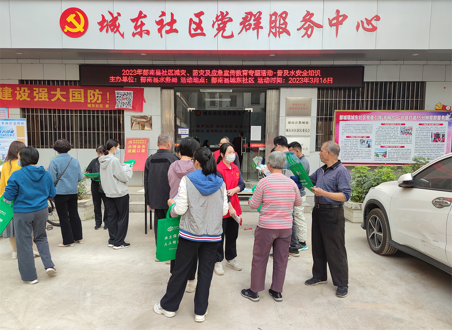 為進(jìn)一步提高居民的減災(zāi)防災(zāi)意識(shí)和自救互救能力,筑牢減災(zāi)防災(zāi)的人民防線(xiàn),營(yíng)造良好的社會(huì)氛圍。3月16日上午,縣水務(wù)局組織工作人員聯(lián)合城東社區(qū)開(kāi)展2023年郁南縣社區(qū)減災(zāi)、防災(zāi)及應(yīng)急宣傳教育專(zhuān)題活動(dòng),向社區(qū)群眾普及水安全知識(shí)。