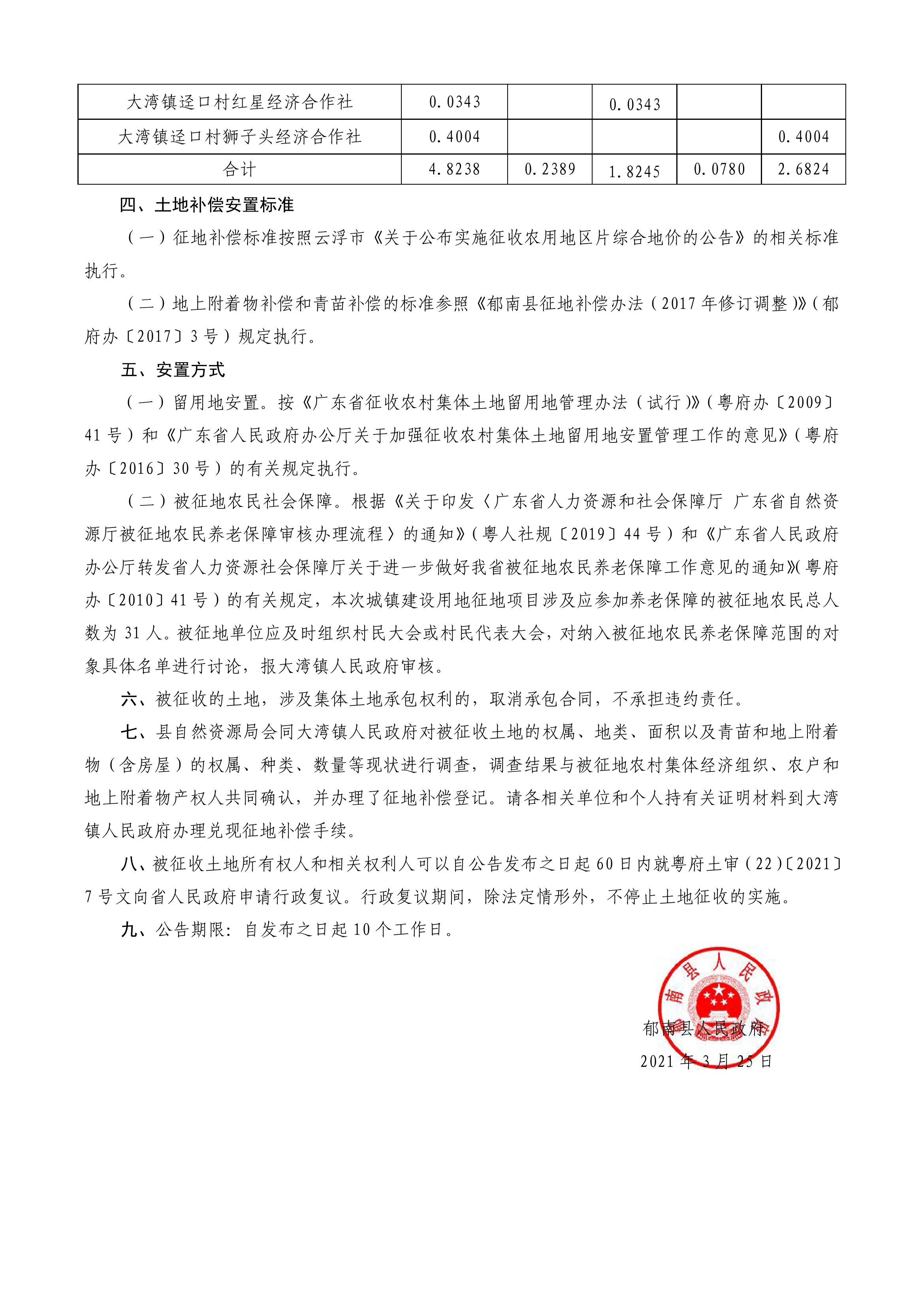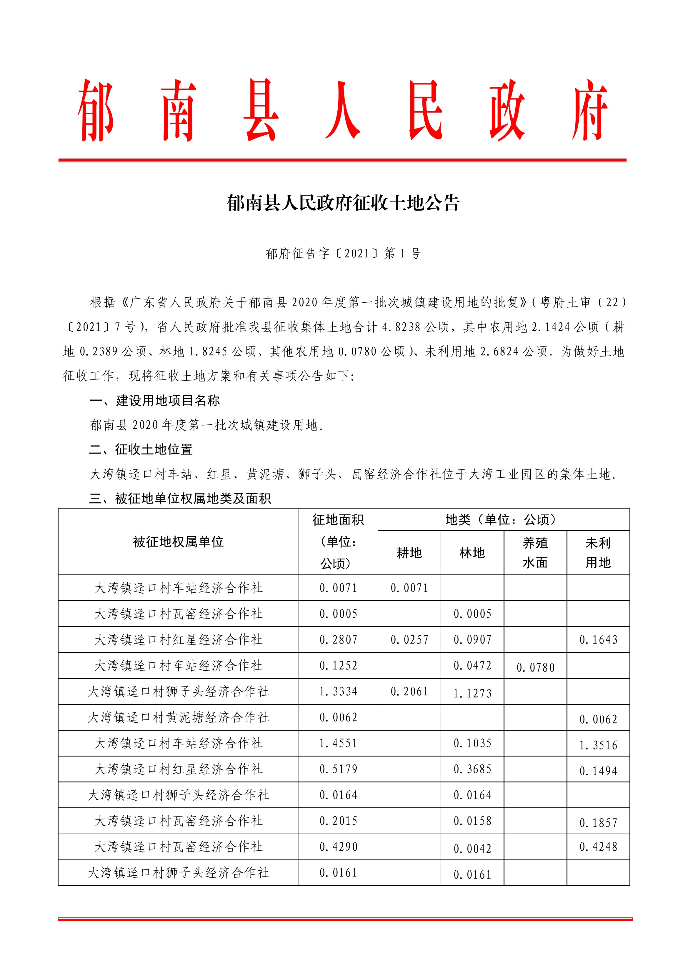 郁南縣人民政府征收土地公告(郁府征告字〔2021〕第1號)