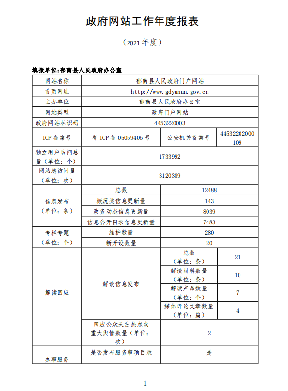 (郁南縣人民政府門(mén)戶網(wǎng)站)政府網(wǎng)站工作年度報(bào)表(2021年度)