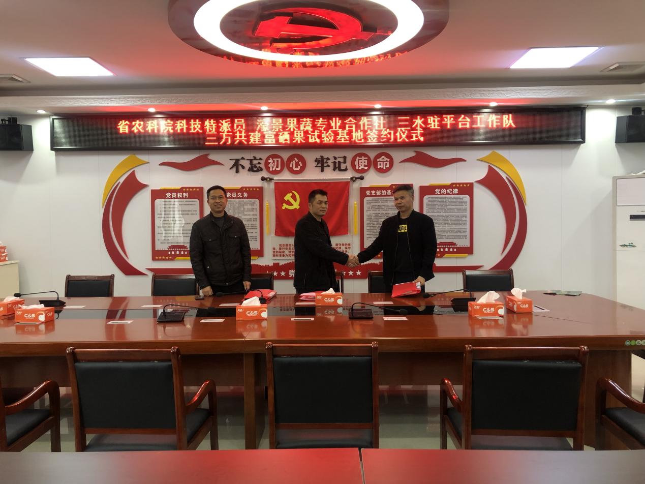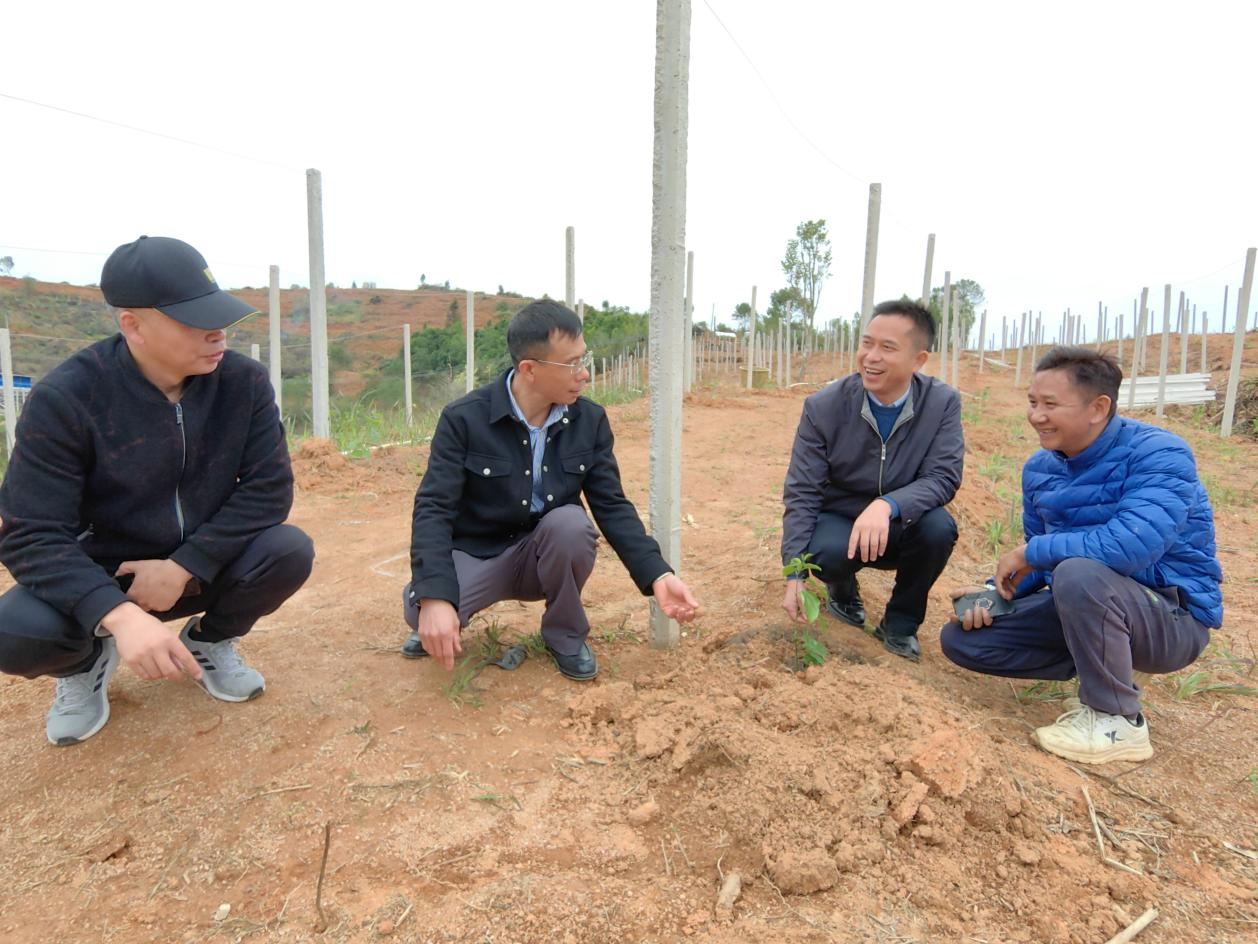 驛站專家和工作隊(duì)幫助返鄉(xiāng)后的申老板牽線引路,幫助其很快確定了項(xiàng)目基地選址——位于妙門村的六利山頭,并鏈接省科院科技特派員團(tuán)隊(duì)技術(shù)支持,指導(dǎo)申老板以“黨支部+駐站專家+科技特派員+合作社+大戶+基地”的合作模式共同打造了富硒果種植基地,并為基地命名“妙門紅”,寓意妙門村未來發(fā)展紅紅火火,也象征著鎮(zhèn)村打造“紅色黨建+綠色經(jīng)濟(jì)發(fā)展”品牌的決心。