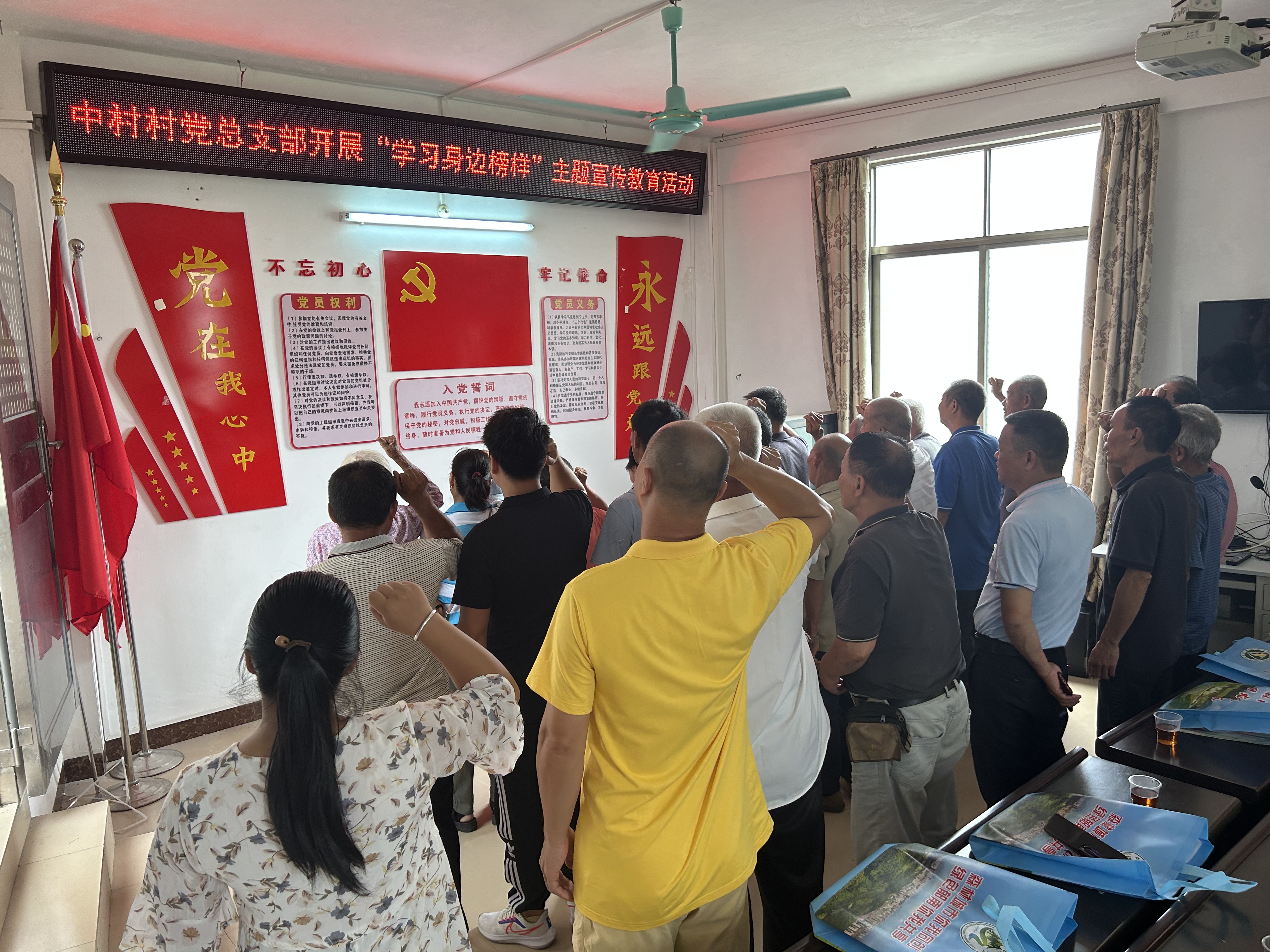 重溫入黨誓詞。中村村支部書(shū)記帶領(lǐng)全體黨員重溫入黨誓詞,在莊嚴(yán)的誓詞聲中,黨員們重憶共產(chǎn)黨員的初心和使命,表示會(huì)時(shí)刻牢記共產(chǎn)黨員的身份,在鄉(xiāng)村振興中接續(xù)奮斗。