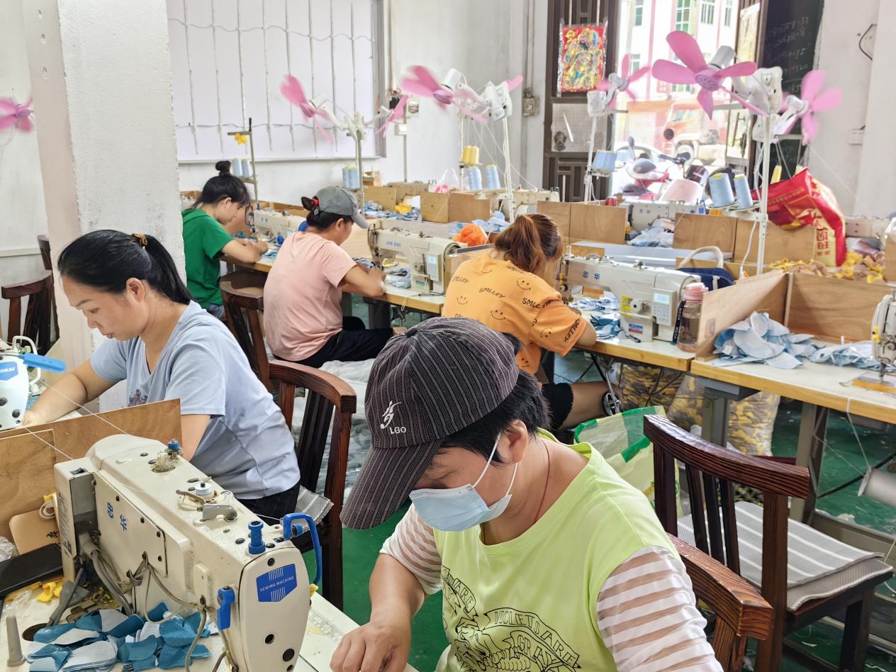 7月5日,由郁南縣平臺鎮(zhèn)政府和駐鎮(zhèn)幫鎮(zhèn)扶村工作隊共同推動謀劃的第4間就業(yè)幫扶車間——興裕玩具加工就業(yè)幫扶車間正式啟動,車間內(nèi)20余臺縫紉機飛速運轉(zhuǎn),工人們緊張作業(yè),產(chǎn)品經(jīng)縫紉、粘貼、包裝等工序產(chǎn)出后,將在不久后出口到歐美市場。