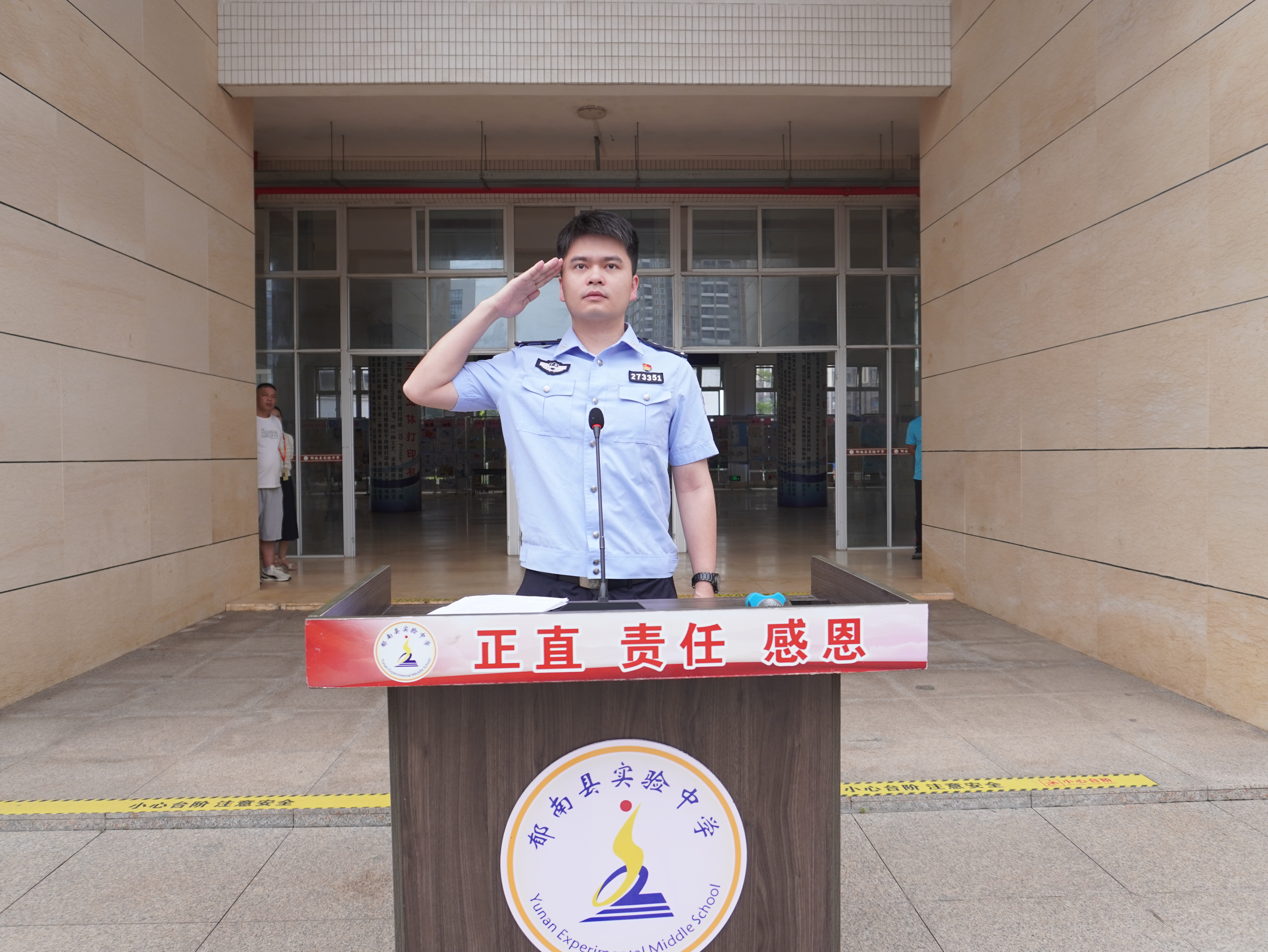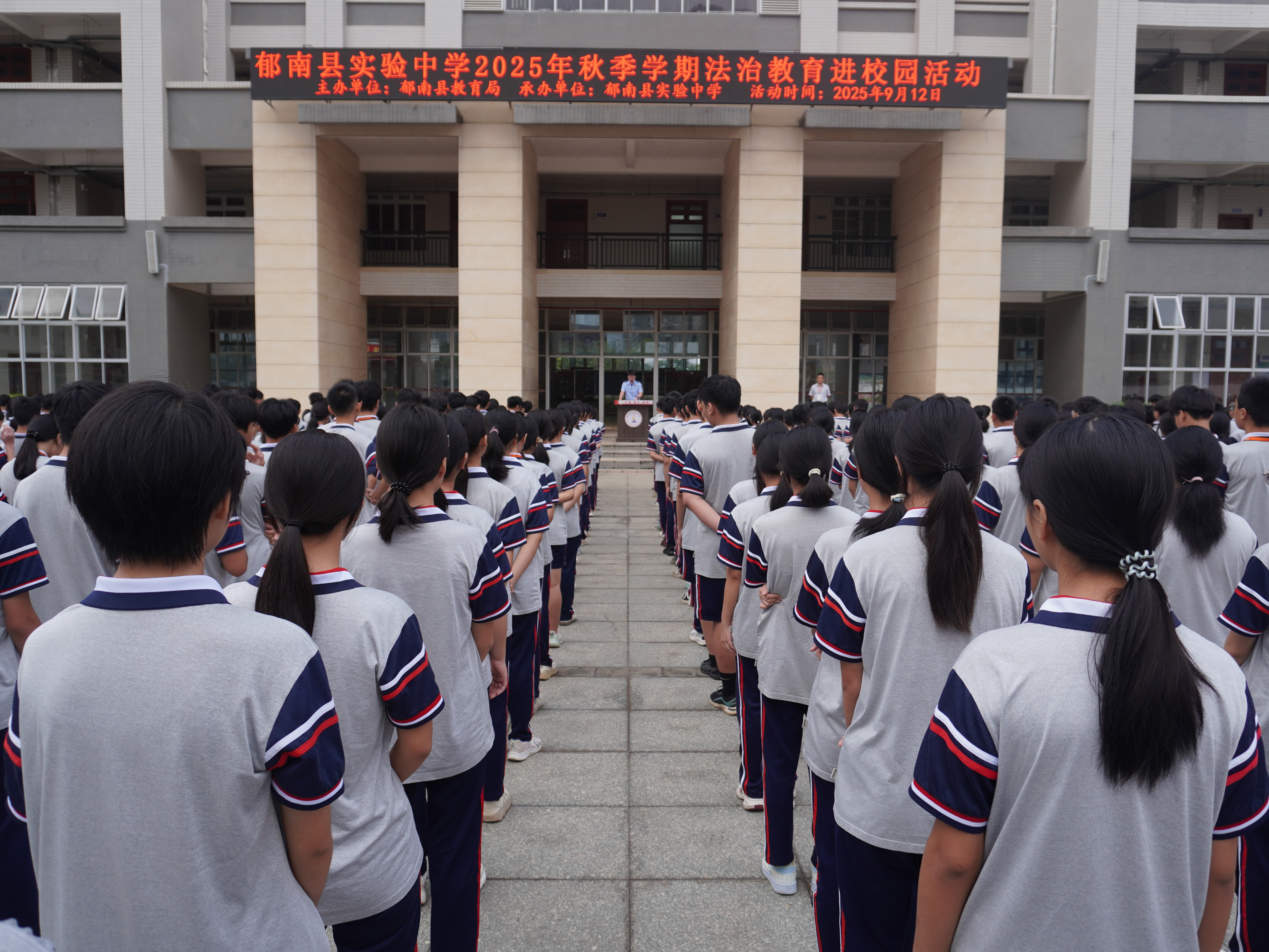 為切實加強校園法治教育,增強全體師生的法治觀念與自我保護能力,全力營造平安、和諧、文明的育人環(huán)境,2025年9月12日上午,郁南縣實驗中學全體師生齊聚綜合樓廣場,隆重舉行了“法治進校園”主題教育活動。此次活動特邀都城鎮(zhèn)派出所副所長、學校法治副校長、學校杰出校友黃錦權進校,為師生上一堂法治安全教育課。