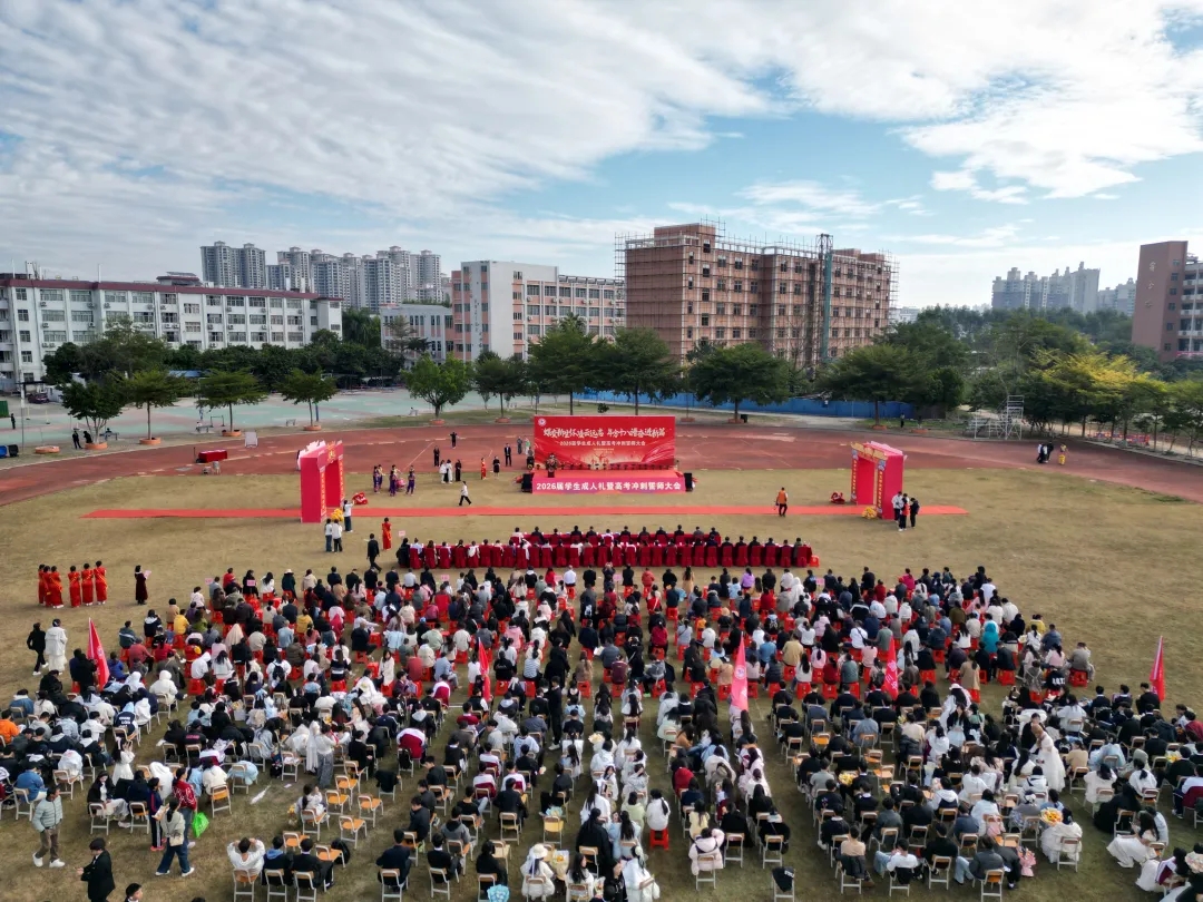 2025年11月22日上午,郁南縣職業(yè)技術學校足球場彩旗飄揚、禮炮齊鳴,2026屆成人禮暨高考沖刺誓師大會隆重舉行。大會以“蝶變新生懷凌云遠志,年方十八譜奮進新篇”為主題,縣政府副縣長溫伯榮、縣教育局副局長吳卓堯等縣領導和局領導,學校班子與中層行政,23級高考部全體師生及家長代表共千余人齊聚現(xiàn)場,共同見證這一莊重時刻。