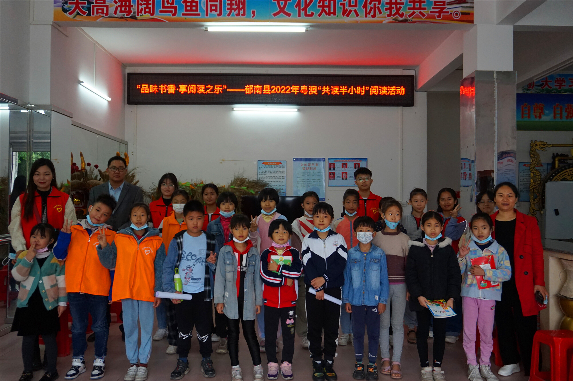 為迎接黨的二十大,充分發(fā)揮圖書館作為文化傳播主力軍的作用,推動全民閱讀深入開展,4月23日,郁南縣文化圖書和博物館分別在縣圖書館總館、縣文化館圖書館連灘鎮(zhèn)分館、河口鎮(zhèn)和都村粵書吧設置了3個共讀點,共同舉辦“品味書香·享閱讀之樂”——2022粵澳“共讀半小時”閱讀活動,活動共有100余人參加。