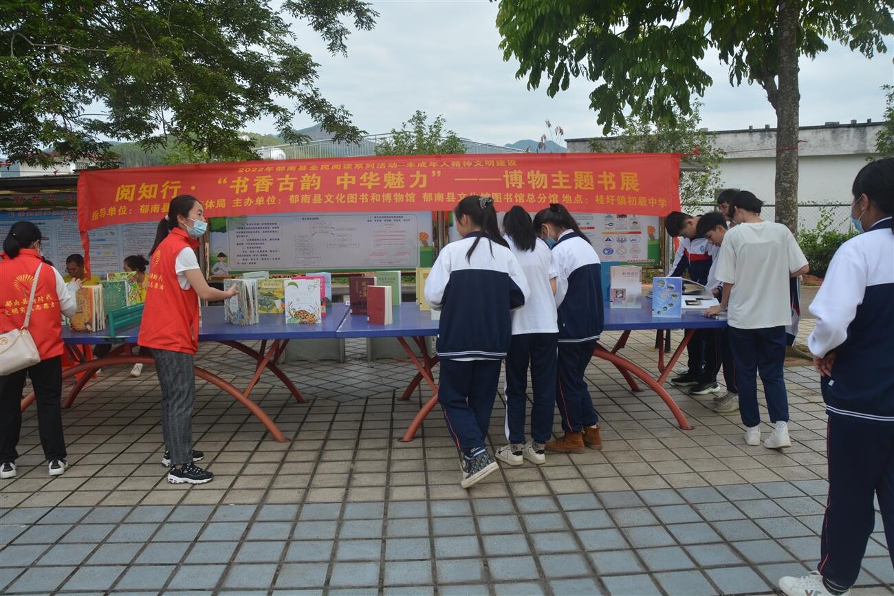 為全面貫徹落實黨的十九屆六中全會精神,依托第46個“5·18”國際博物館日,廣泛宣傳國際博物館日的主題內(nèi)容以及深層次含義,發(fā)揮博物館教育功能,進一步提升未成年人對文物文博、文化遺產(chǎn)保護傳承的認知度和責任感,5月19日,由郁南縣文廣旅體局指導,縣文化圖書和博物館、縣文化館圖書館總分館主辦,桂圩鎮(zhèn)初級中學承辦,在該縣桂圩鎮(zhèn)初級中心開展“2022年5·18國際博物館日暨歷史文化進校園文化志愿服務活動”。通過活動形式,搭建博物館與群眾溝通互動平臺,充分發(fā)揮博物館在堅持道路自信、理論自信、制度自信、文化自信中的陣地作用。