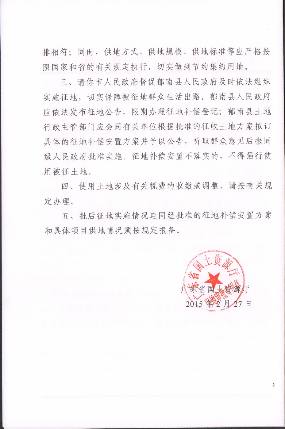 廣東省國土資源廳關(guān)于郁南縣2014年度第四批次城鎮(zhèn)建設(shè)用地的批復(fù)