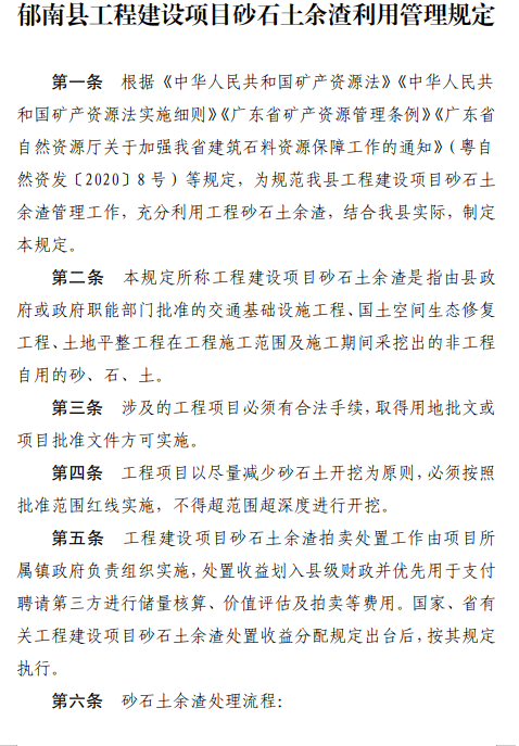 解讀文本《郁南縣工程建設(shè)項(xiàng)目砂石土余渣利用管理規(guī)定》